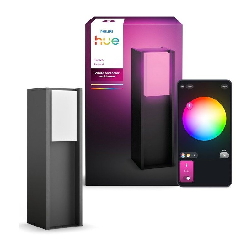 Borne lumineuse basse - PHILIPS HUE - Turaco - Gris anthracite - IP44 - Lumiere blanche et colorée - 1100 lumens