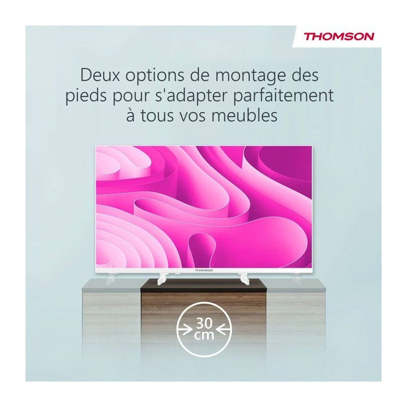 Offrez-vous une expérience visuelle éclatante avec le téléviseur Thomson 32" QLED : des couleurs intenses, une finesse d'image Full HD et une fluidité qui sublime chaque scene. Grâce a Google TV, accédez en un instant a vos applications, contenus préférés et recommandations personnalisées. Compact et polyvalent, ce modele integre un adaptateur 12V, idéal pour une utilisation a domicile comme en mobilité (camping-car, bateau...). Ses 3 ports HDMI 1.4 et sa connectivité WiFi assurent une installation simple et une compatibilité maximale avec tous vos équipements. Un concentré de technologie et de divertissement dans un format 32" parfait pour toutes les pieces?!
