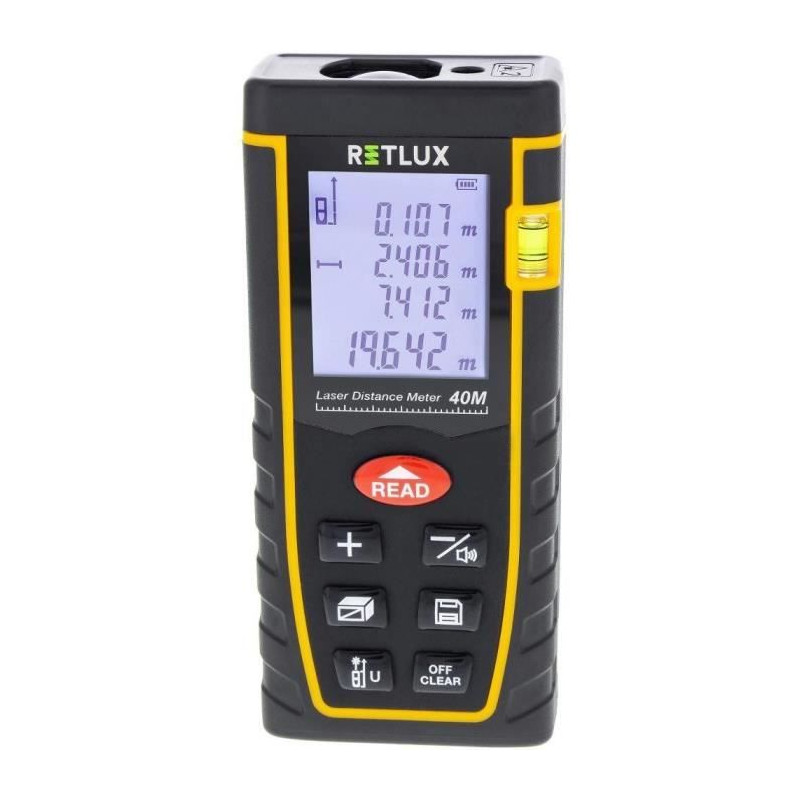 Le télémetre laser RETLUX RHT 100 offre une portée de 40 metres avec une précision de mesure de ±2 mm. Il permet des mesures continues, de surface et de volume, et mémorise jusqu'a 30 valeurs. Équipé d'un écran LCD rétroéclairé, il est idéal pour des calculs rapides et dispose d'une fonction d'arret automatique pour économiser la batterie.
