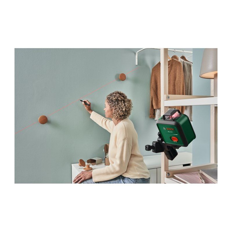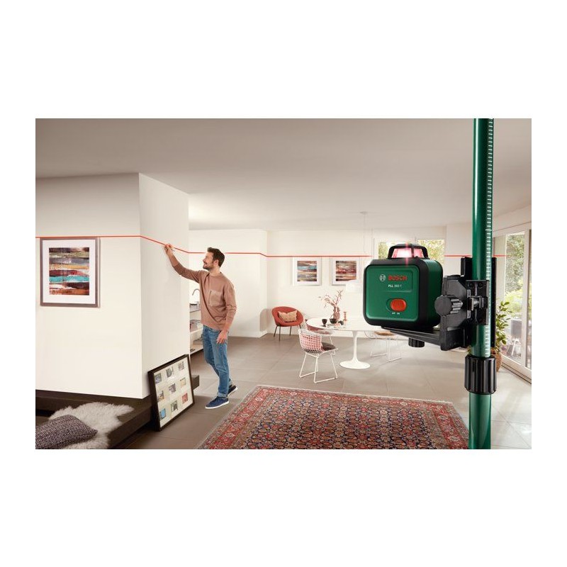 Grâce a son utilisation intuitive, a sa précision et a sa diode laser de qualité supérieure, le PLL 360-1 permet d'effectuer sans effort des alignements précis dans toute la piece. Son unique ligne laser horizontale a 360° permet des alignements faciles et efficaces sur plusieurs murs. Avec une précision de nivellement de +/- 0,4 mm/m et une portée maximale de 24 m de diametre, cet outil est idéal pour suspendre des tableaux, installer des étageres ou peindre. Le PLL 360-1 vous garantit des résultats fiables pour les travaux a réaliser dans la maison.