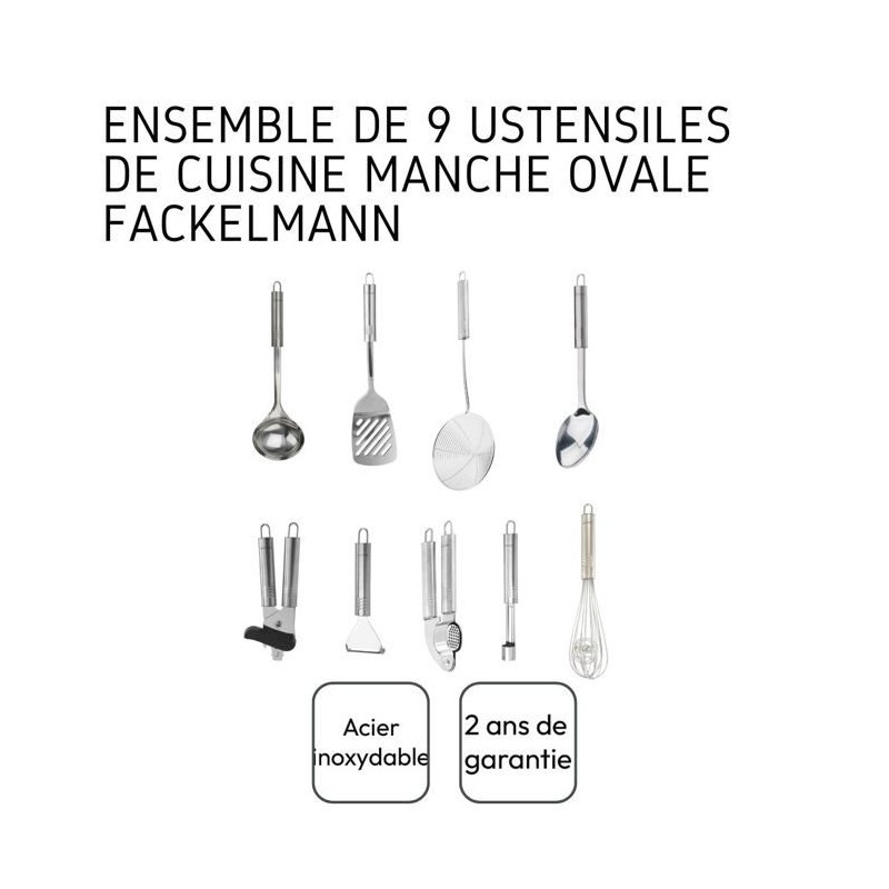 Ensemble de 9 ustensiles de cuisine - FACKELMANN - Ovale - Inox