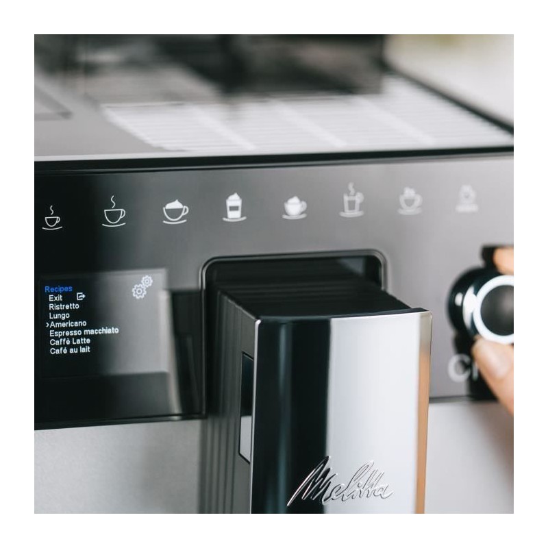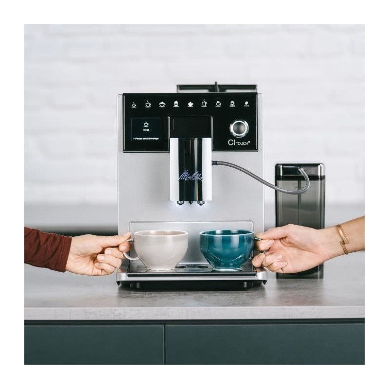 Avec la machine a expresso automatique Melitta® CI Touch®, préparez sans effort une multitude de spécialités de café. Jusqu'a quatre personnes peuvent régler et enregistrer leur boisson préférée. Le réservoir a grains a double compartiment permet de choisir manuellement entre deux variétés de café en gains.