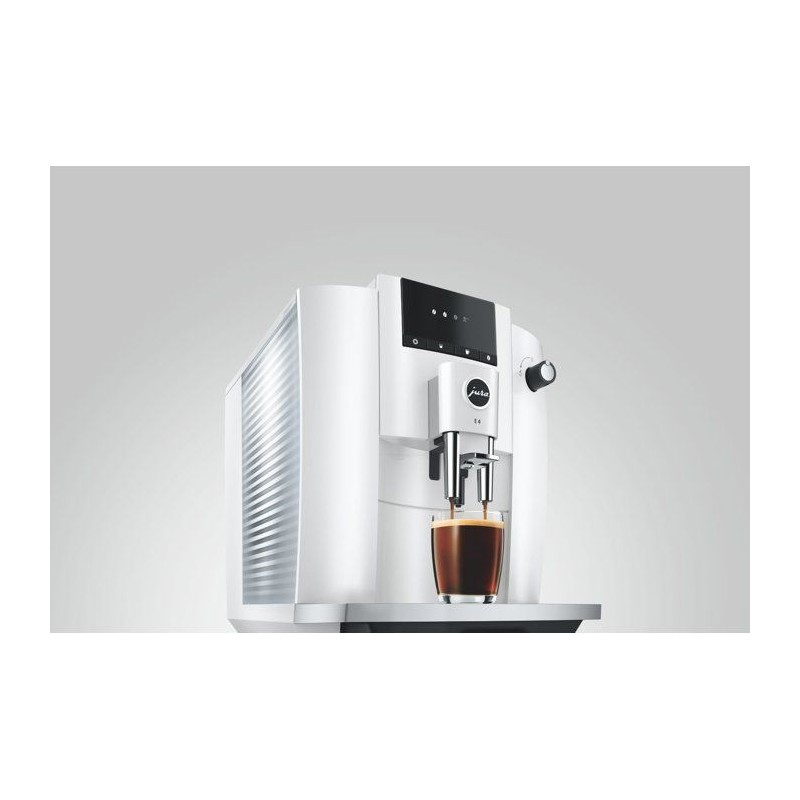 Cette version blanc brillant de la JURA E4 propose le meme niveau d'excellence : extraction parfaite, fraîchement moulu, intensité réglable et design lumineux haut de gamme. Elle est idéale pour ceux qui veulent un café pur et aromatique avec une machine élégante et intuitive.