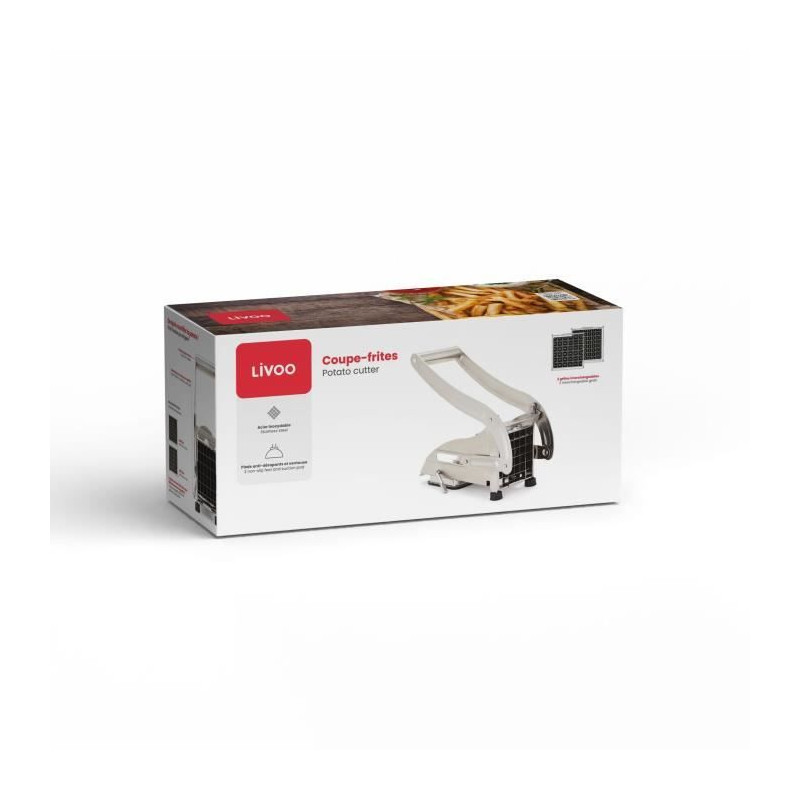 Coupe-frites - LIVOO - MEN410 - Acier inoxydable - 2 grilles - Pieds antidérapants et ventouse - Grilles compatible lave-vaisse