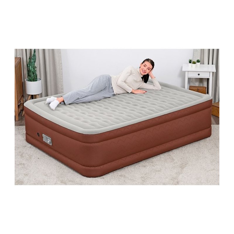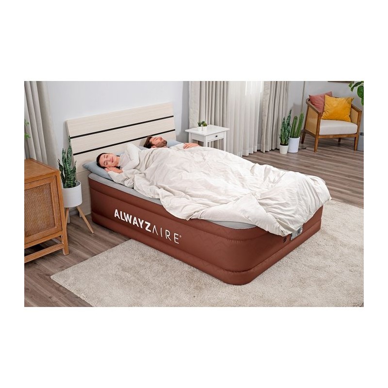 Bestway® AlwayzAire® Matelas gonflable Fortech® 2 places avec double pompe électrique intégrée Comfort Choice+, 2,03 m x 1,52 m x 51 cm Taille : 2,03 m x 1,52 m x 51 cmMatelas gonflable pour 2 adultesLa pompe double AlwayzAire® Comfort Choice+(TM) intégrée 220-240 V gonfle le lit en 3 minutesLes capteurs situés a l'intérieur regonflent en silence le lit pour maintenir la pression d'air souhaitée pendant toute la nuitFe
