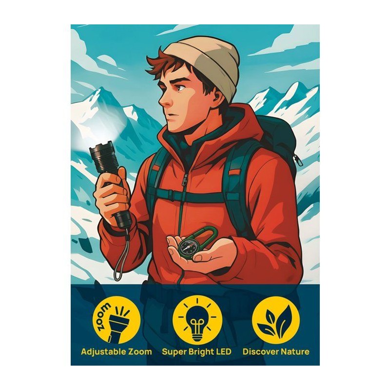 Un kit essentiel pour les explorateurs de tous les jours ou les petits amoureux de la nature : une torche ultra lumineuse, et une boussole magnétique, compacte... Prets pour l'aventure !