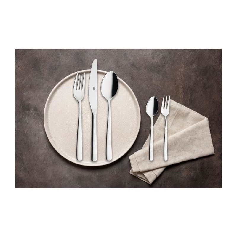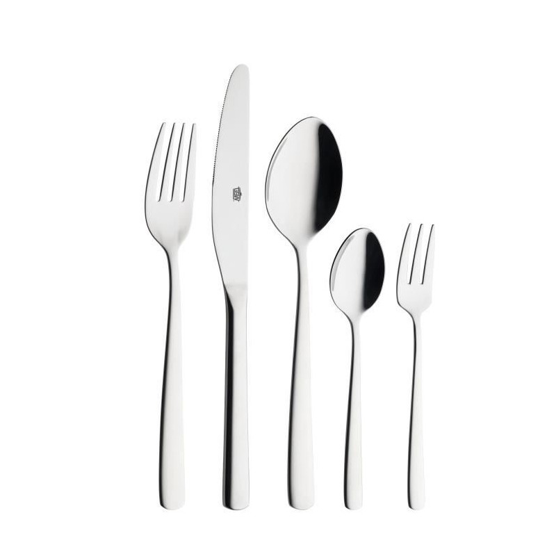 Ménagere GSW Acier Inox 18/10 Massif - 60 couverts au design ergonomique tres agréable : 12 fourchettes/12 couteaux monoblocs a lame micro dentée/12 cuilleres soupe/12 cuilleres café/12 fourchettes gâteau - Passe au lave-vaisselle - En écrin cadeau
