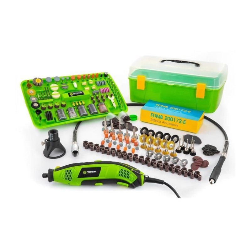 Découvrez l'outil multifonction électrique Fieldmann FDMB 200172-E, idéal pour les bricoleurs. Avec une puissance de 170 W et une vitesse réglable de 10 000 a 35 000 tr/min, il est léger (2 kg) et ergonomique. Son mandrin de 0,8 a 3,2 mm permet d'utiliser 440 accessoires variés, parfait pour tous vos projets de modélisme et de bricolage.