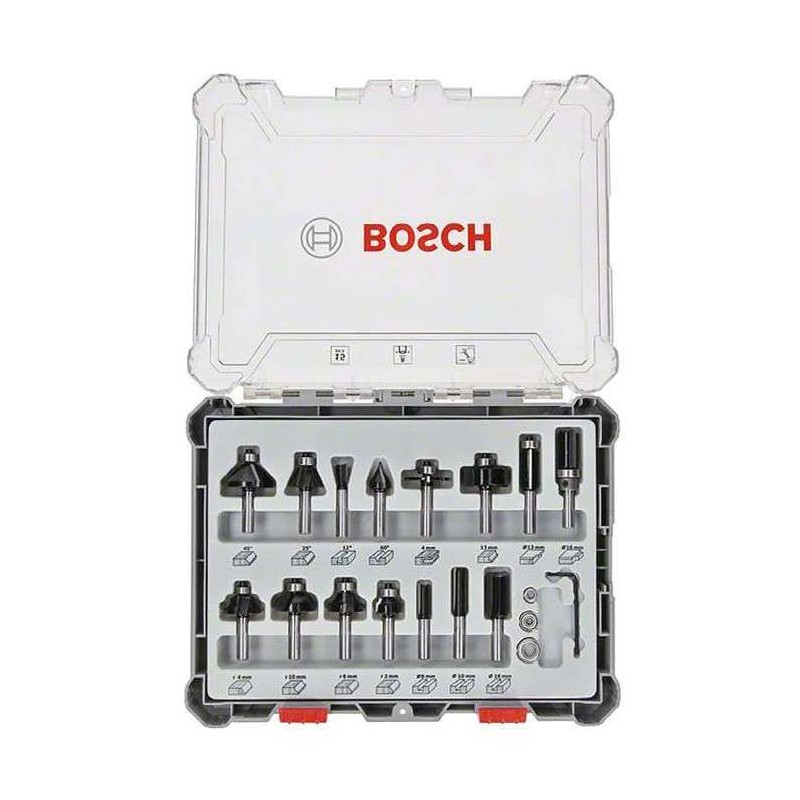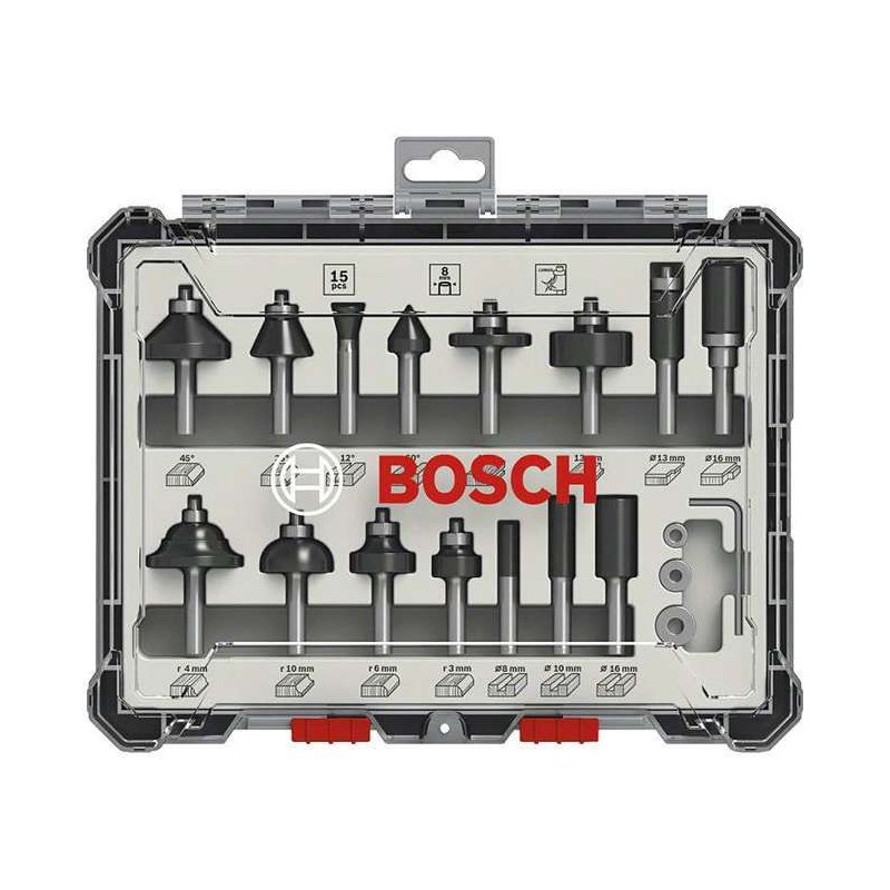Coffret de Fraises - BOSCH - 2607017472 - 15 pieces - Queue de 8 mm - Compatible avec défonceuses