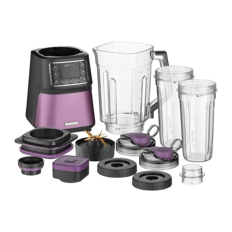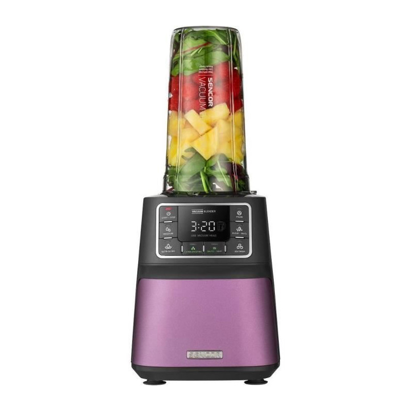 Super Blender Sencor SBU 7873VT - Mélangeur automatique sous vide Super Blender Le mélange et le stockage sous vide conservent le maximum de nutriments, le goût frais et inhibent la croissance des micro-organismes et la formation de toxines Détecte automatiquement les accessoires montés Mélange multicyclonique avec 8 lames Titan pour des résultats optimaux Transformez les fruits entiers, les noix, les légumes, les graines et autres superaliments en une puissance liquide supreme pour votre corps Nutri Smoothie peut favoriser l'amélioration du sommeil, de la digestion et de la récupération apres le sport Nutri Smoothie aide a recharger l'énergie de votre corps tout au long de la journée Extrayez les nutriments difficilement accessibles cachés dans les graines, les céréales, les noix, en décomposant les fruits et légumes entiers Technologie de mélange intelligente Sencor® Nutri pour des résultats parfaits Programmes de mélange prédéfinis PULSE pour un mélange instantané et un broyage de glace Creme glacée 7 programmes pour des résultats de mélange parfaits (SMOOTHIE, NUTRI BLEND, SMOOTHIE EXTRA, SOUPE SAUTE, ICE CRASH, FARINE ET NOIX, PULSE/EXTRA) Mécanisme de sécurité permettant de démarrer uniquement en Pieds antidérapants pour une sécurité accrue Lavable au lave-vaisselle Pieces amovibles Matériau Tritan (PCTG) pour une durabilité accrue Huit lames en acier inoxydable de haute qualité avec revetement en titane Empeche la perte d'enzymes et de vitamines Réduit l'oxydation des smoothies nutritifs Contenu de l'emballage : Pichet mixeur TRITAN (PCTG) de 1,5 L, bouteille de stockage de 0,7 L, unité sous vide Longueur du cordon d'alimentation : 1,1 m 28 000 tr/min Puissance d'entrée : 1 500 W