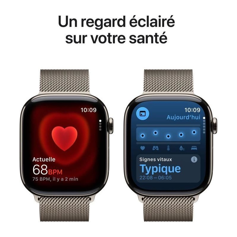Apple Watch Series 11 GPS + Cellular - 46mm - Boîtier Natural Titanium - Bracelet Natural Milanese Loop - S/M