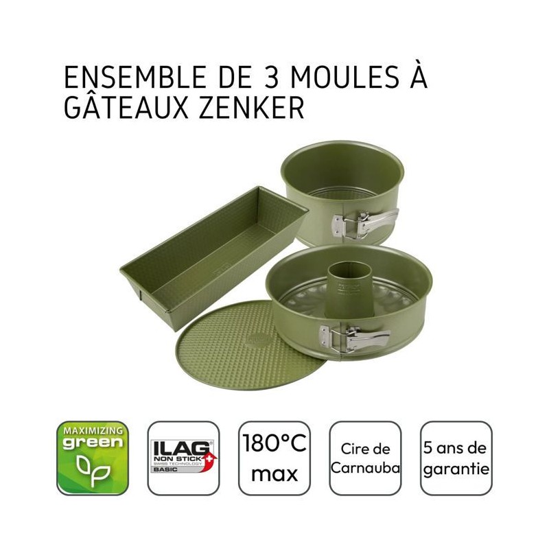 Ensemble de 3 moules a gâteaux - ZENKER - Green Vision - 18 a 30 cm