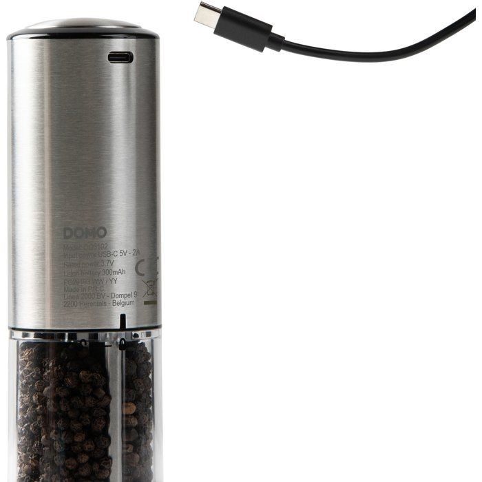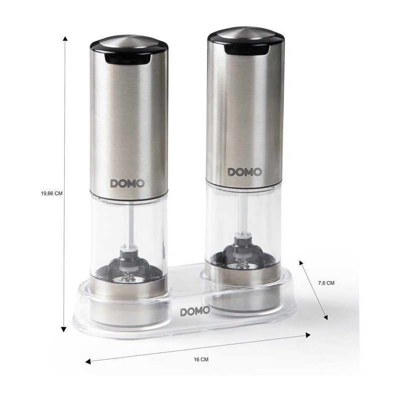 Ensemble de 2 moulins a poivre et sel électriques - DOMO - USB - 96 ml - Transparent / Argent