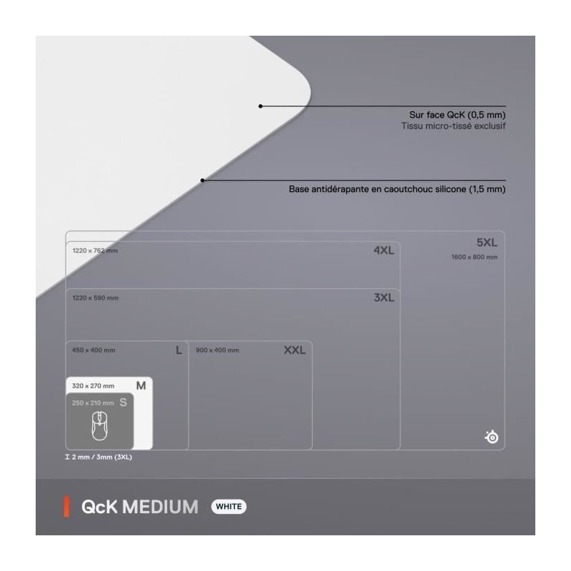 Tapis de souris gaming - STEELSERIES - QcK M - Blanc