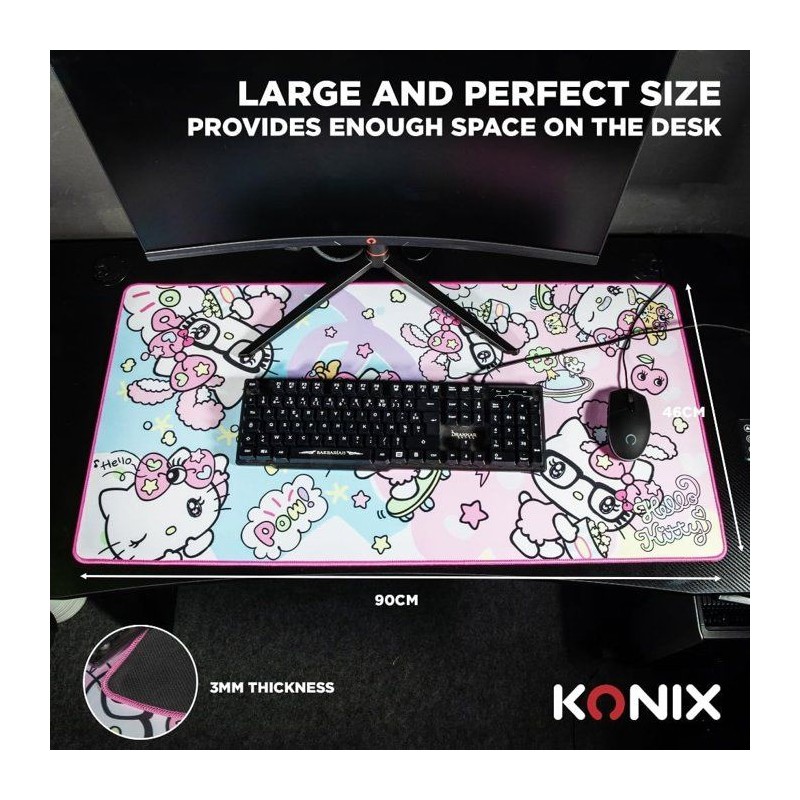Tapis de souris gaming - KONIX - Hello Kitty - XXL 90 x 46 cm - Surface microfibre antidérapante - Caoutchouc