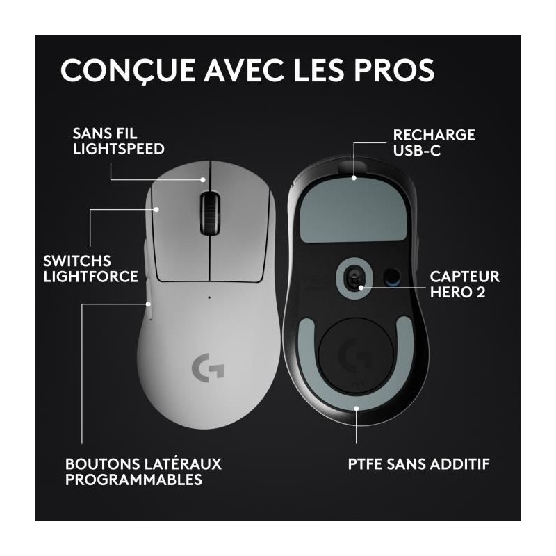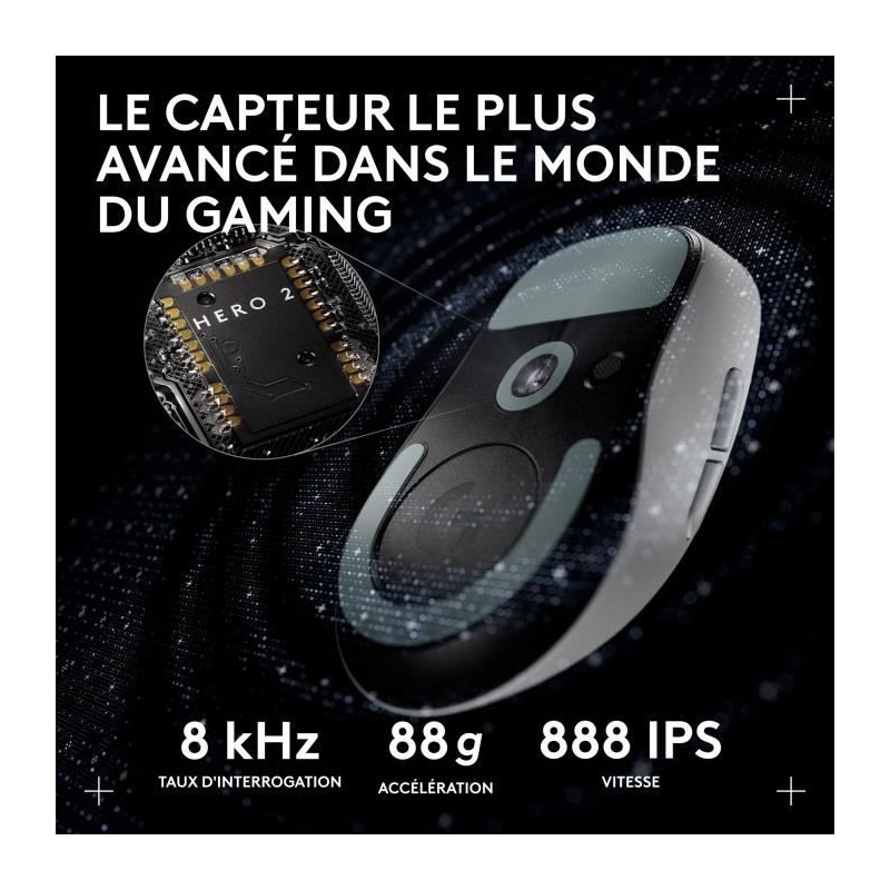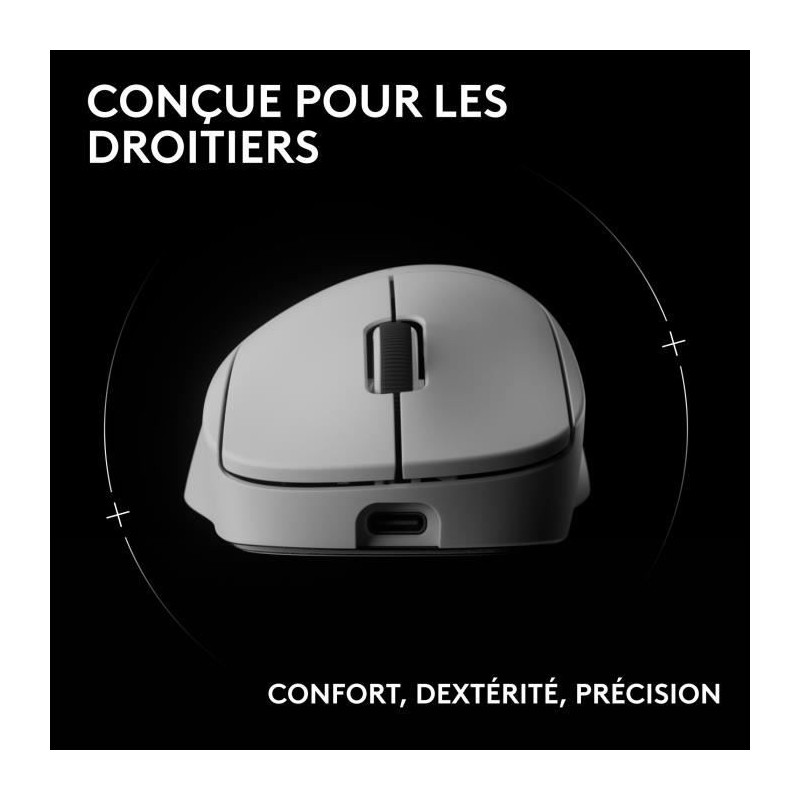 La souris gaming sans fil Logitech G PRO X SUPERLIGHT 2 DEX est une souris légere axée sur la performance, conçue pour le confort de la main droite et pour assurer une dextérité et une précision accrues. La technologie sans fil LIGHTSPEED offre une faible latence et des performances fiables, meme dans les environnements les plus exigeants. Le capteur HERO 2 de nouvelle génération garantit une précision au pixel pres pour tous vos jeux préférés. Conçue avec des pros, pensée pour gagner.
