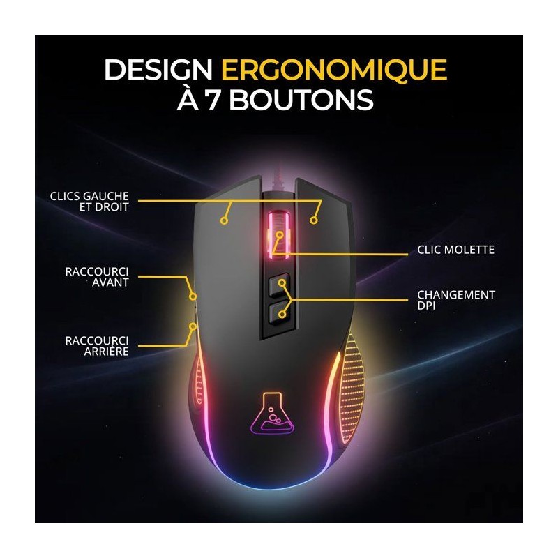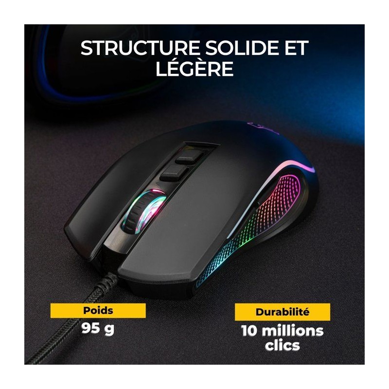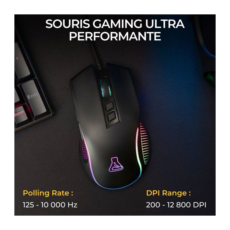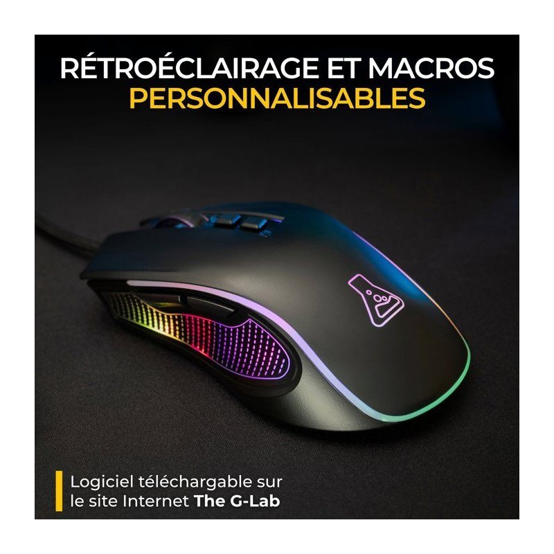 Souris gaming filaire - THE G-LAB - KULT THORIUM - 12800 DPI - Ergonomique - 7 Boutons - Rétroéclairage RGB