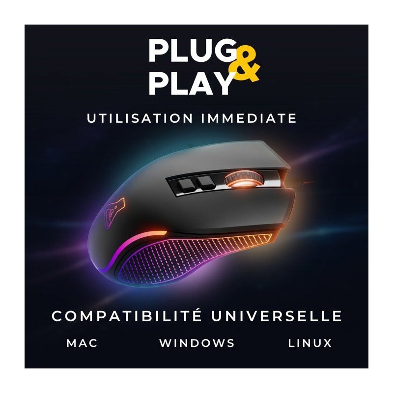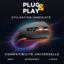 La KULT THORIUM est une souris gaming filaire ergonomique de THE G-LAB. Équipée du capteur INSTANT A825 réglable jusqu'a 12 800 DPI, elle offre une précision redoutable pour tous vos jeux. Son taux de rafraîchissement réglable jusqu'a 1 000 Hz garantit une réactivité maximale. Avec ses 7 boutons programmables et son rétroéclairage RGB personnalisable via logiciel (Windows), elle s'adapte a votre style de jeu. Sa forme ergonomique de 124x71x39 mm et son poids de 95 g (sans câble) assurent un confort optimal sur les longues sessions. Câble de 1,8 m. Durée de vie des boutons : 10 millions de clics. Compatible Windows et Mac.