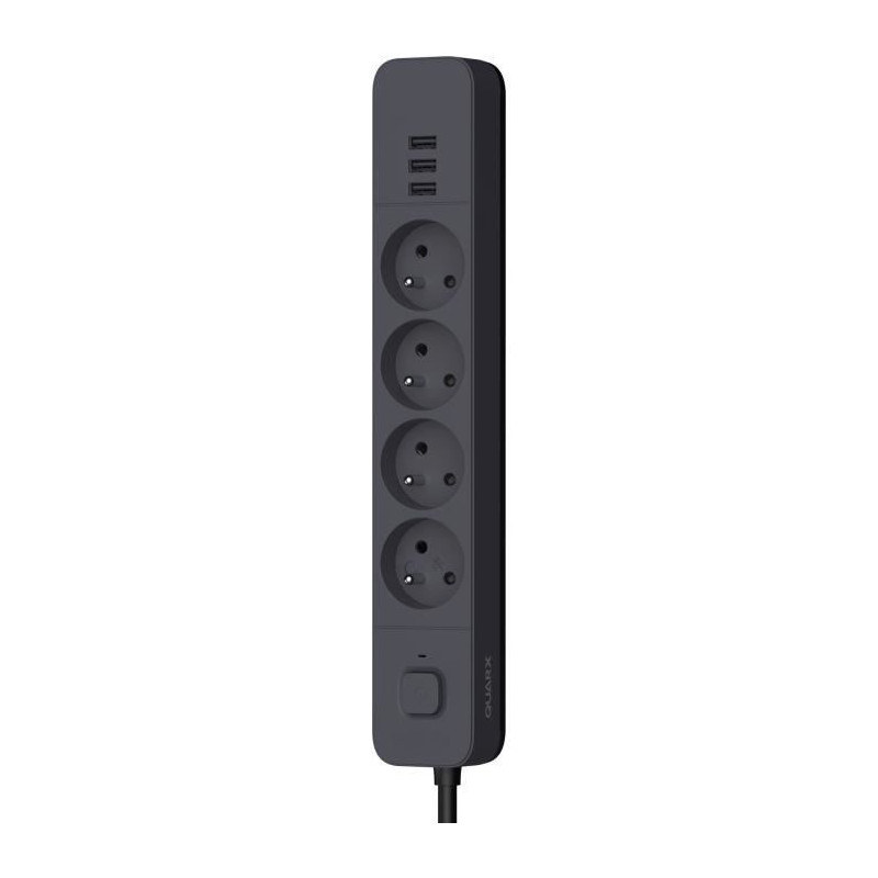 Multiprise - QUARX - 4 prises - Avec 3 ports USB, câble 3m