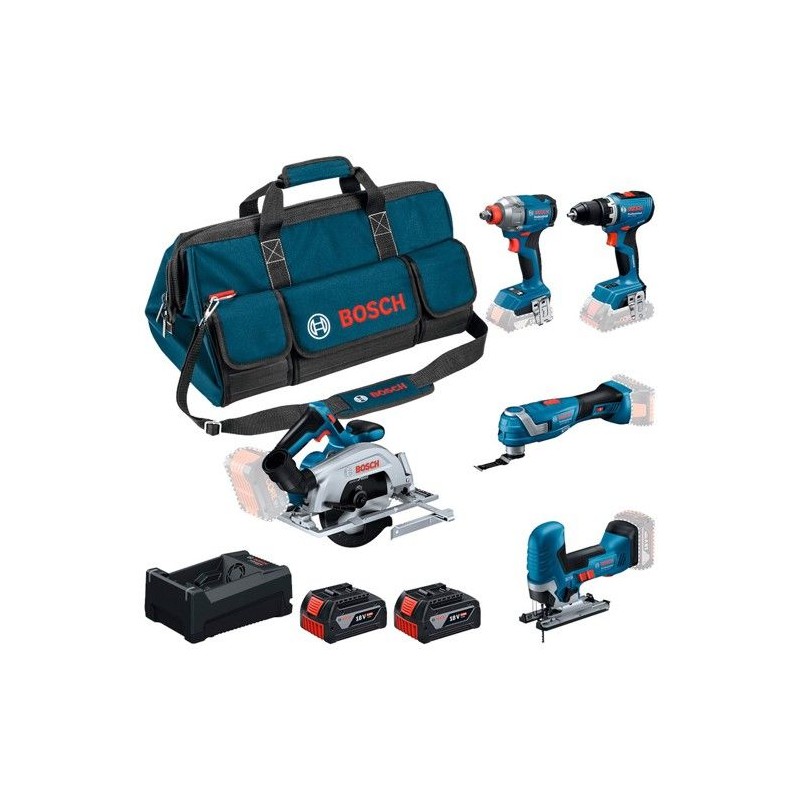 COMBO KIT 5 OUTILS : GSR 18V-65 + GDX 18V-285 + GKS 18V-57-2 + GOP 18V-34 + GST 18V-125 S + GBA 2x 5.0Ah + GAL 12V-18V-80 + sac