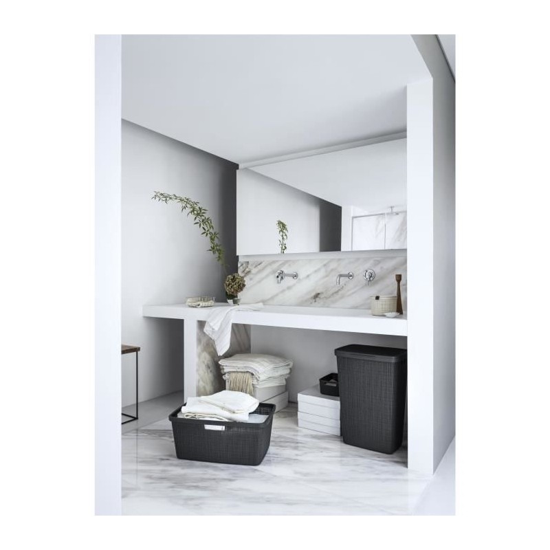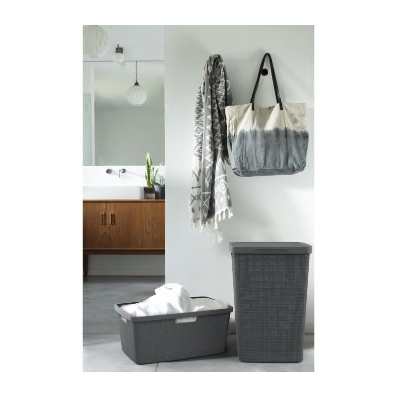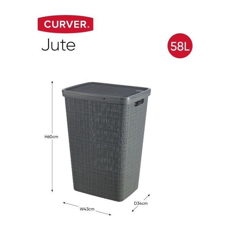 Ce coffre a linge CURVER de 58L, fabriqué a 70% de plastique recyclé, mesure 34x43x60 cm. Il est doté d'un couvercle texturé ventilé pour aérer vos vetements. Pratique et esthétique, il s'integre parfaitement dans un style contemporain et est facile a manipuler grâce a ses deux poignées.