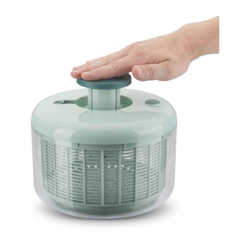 Essoreuse a salade de 4,2 L avec systeme poussoir pour un essorage facile. Bouton d'arret immédiat et base antidérapante pour une utilisation sécurisée. Poignée rétractable pour un rangement compact. Compatible lave-vaisselle.