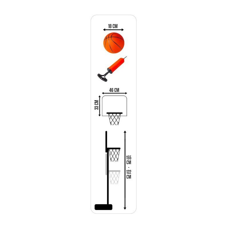 Panier sur pied réglable de 122 a 155 cm, parfait pour accompagner la croissance de l'enfant. Fourni avec ballon et pompe. Montage facile sans outils, panneau large et stable. Idéal pour découvrir le basket en intérieur ou extérieur, développer coordination, précision et premiers jeux en équipe dans un esprit ludique et rassurant.