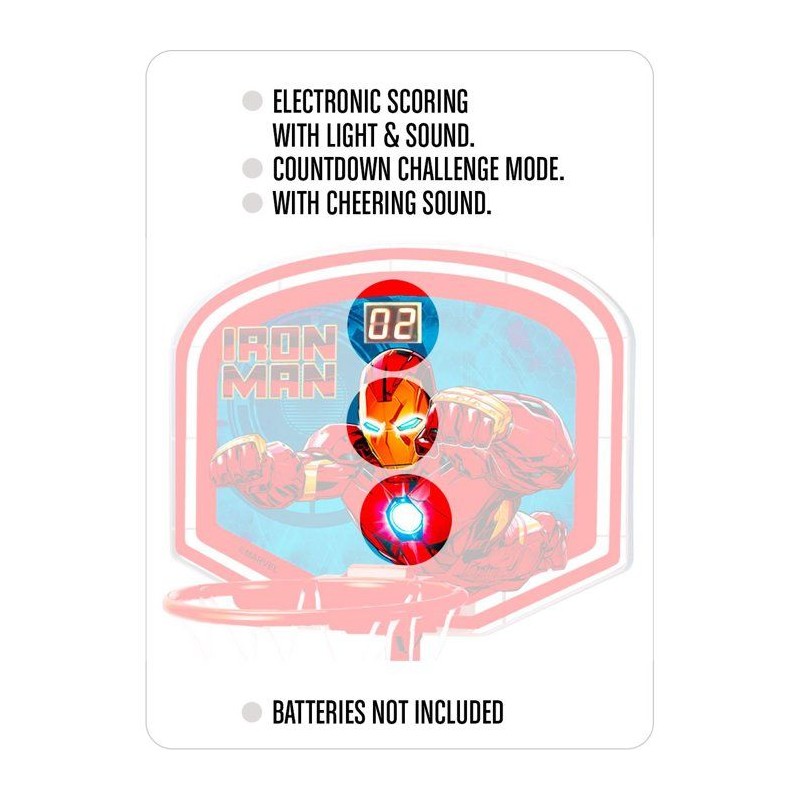 Panier interactif Iron Man avec sons et lumieres pour motiver l'enfant ! Hauteur réglable 100-160 cm. Livré avec ballon, pompe et base a lester. Mode défi ludique pour marquer un maximum de points. Idéal pour développer coordination, équilibre et confiance. Fonctionne avec 3 piles AAA (non fournies).