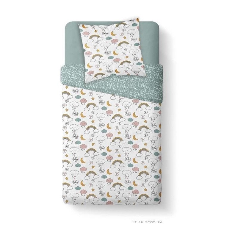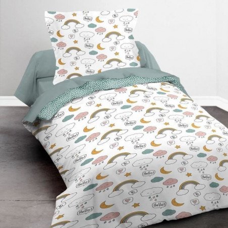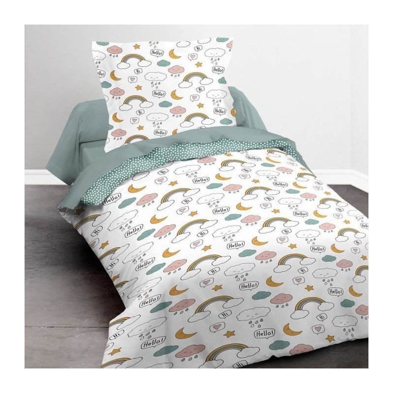 TODAY Parure de lit Enfant Kids First 1.15 - 1 personne - Housse de couette 140 x 200 et 1 taie 63 x 63 cm - Imprimé blanc
