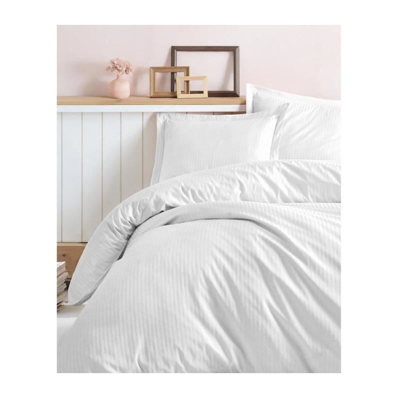 Parure de lit - 129CTN63618 - 1 housse de couette 220 x 240 cm + 2 taies d'oreiller 60 x 60 cm - Satiné 100% coton - Blanc