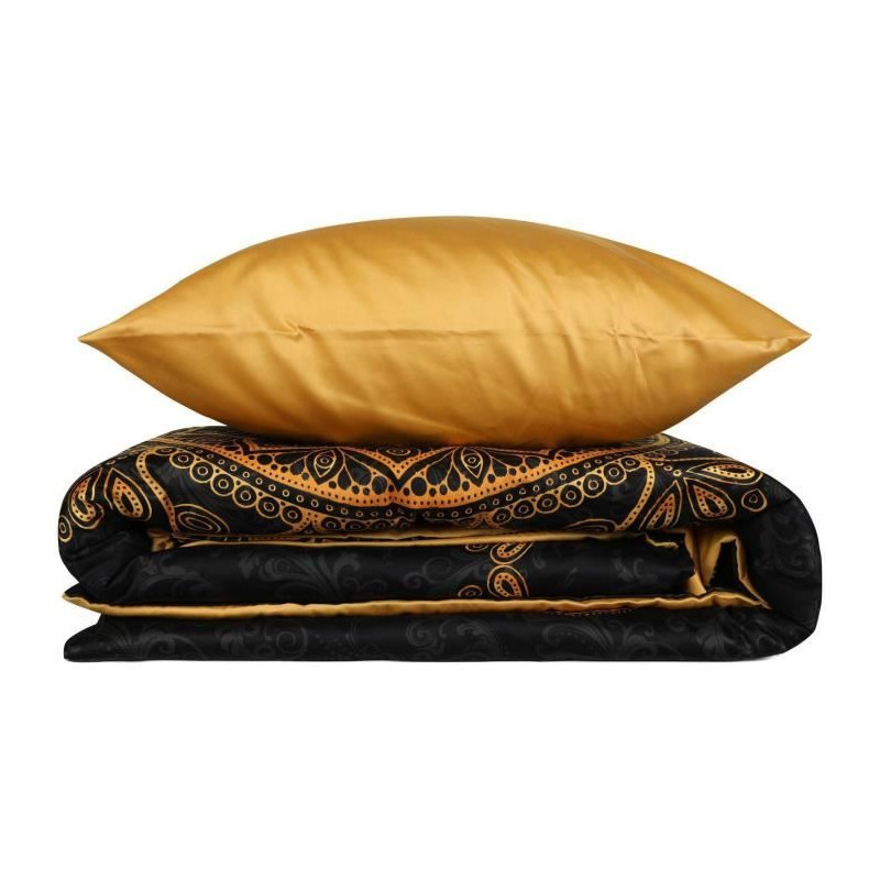 Parure de lit - 129CTN63660 - 1 housse de couette 220 x 240 cm + 2 taies d'oreiller 60 x 60 cm - Satiné 100% coton - Noir