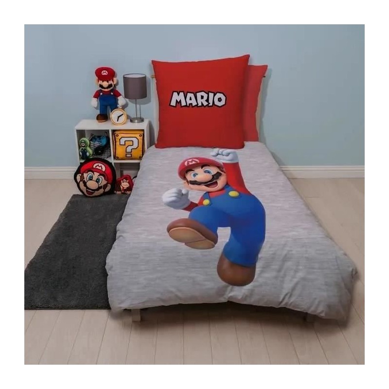 Parure de lit réversible - MARIO BROS - Mario et Luigi - Microfibre - 1 housse de couette 140 x 200 cm + 1 taie 63 x 63 cm