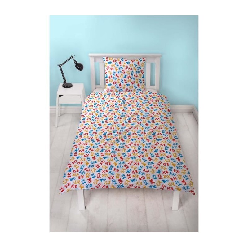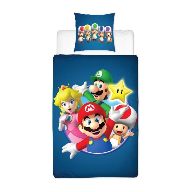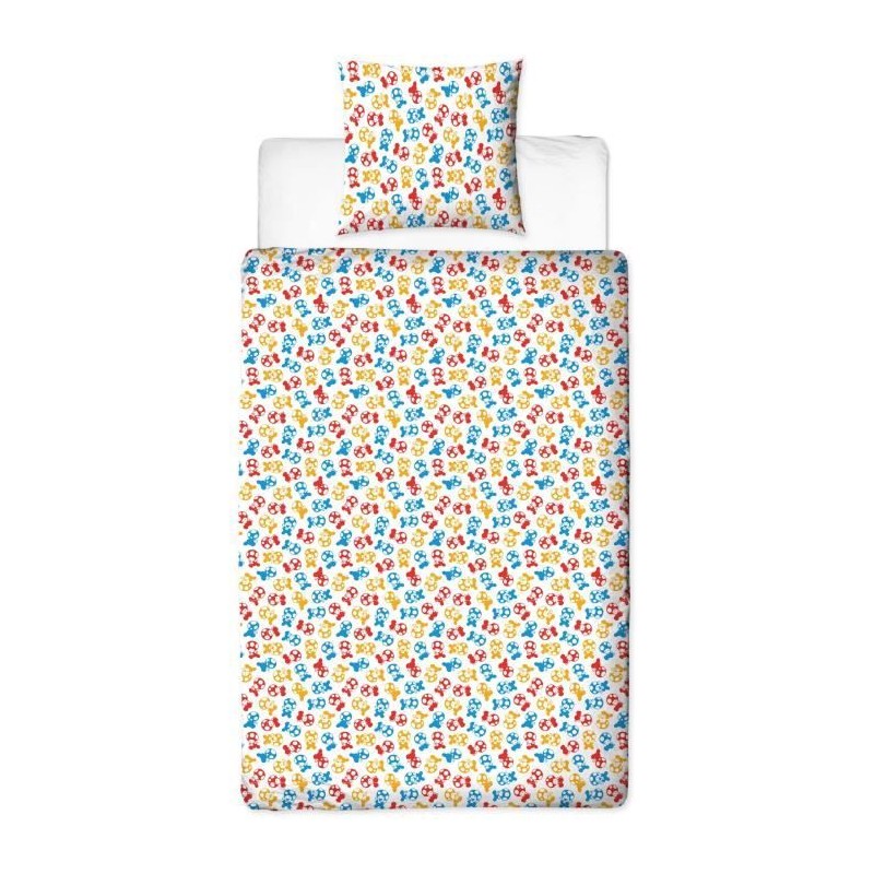 Parure de lit réversible - MARIO BROS - Mario et ses amis - Microfibre - 1 housse de couette 140 x 200 cm + 1 taie 63 x 63 cm
