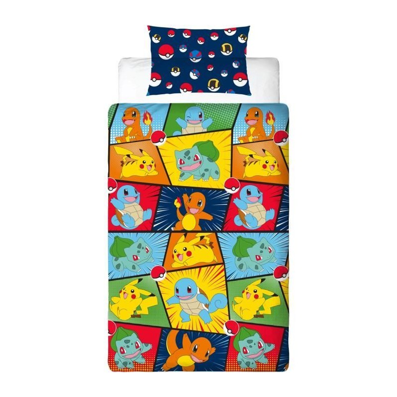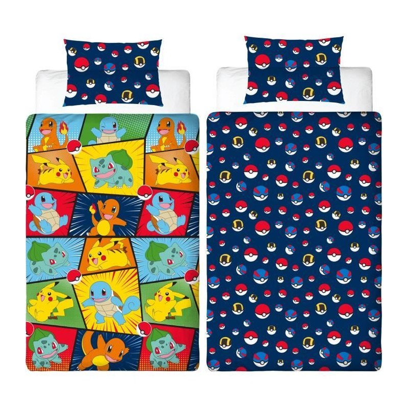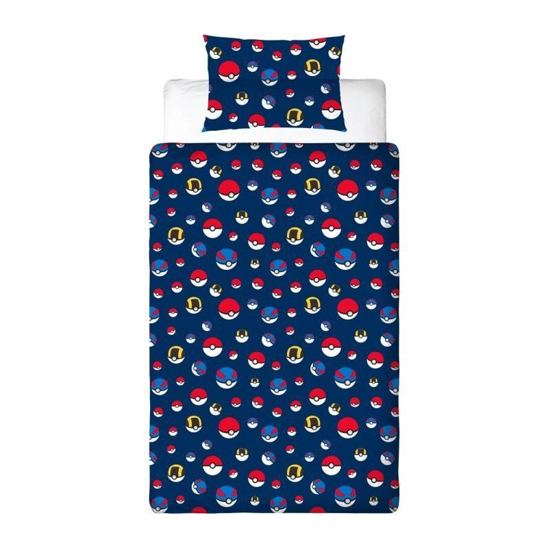 Parure de lit réversible - POKEMON - Starter & Poké-ball - Microfibre - 1 housse de couette 140 x 200 cm + 1 taie 63 x 63 cm