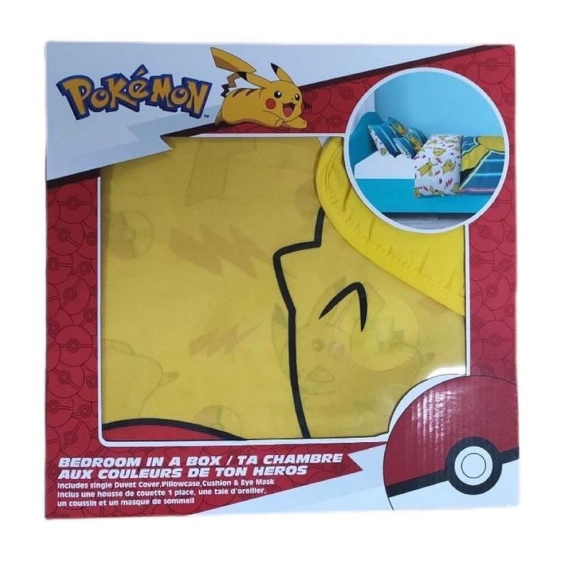Set de chambre - POKEMON - Pikachu - Housse 140 x 200 cm + Taie 63 x 63 cm + Coussin 30 x 30 cm + Masque de sommeil