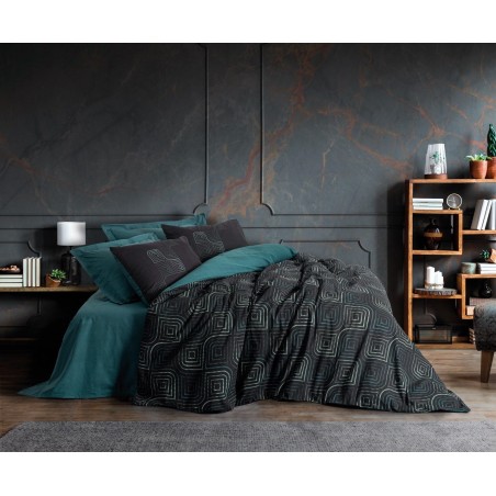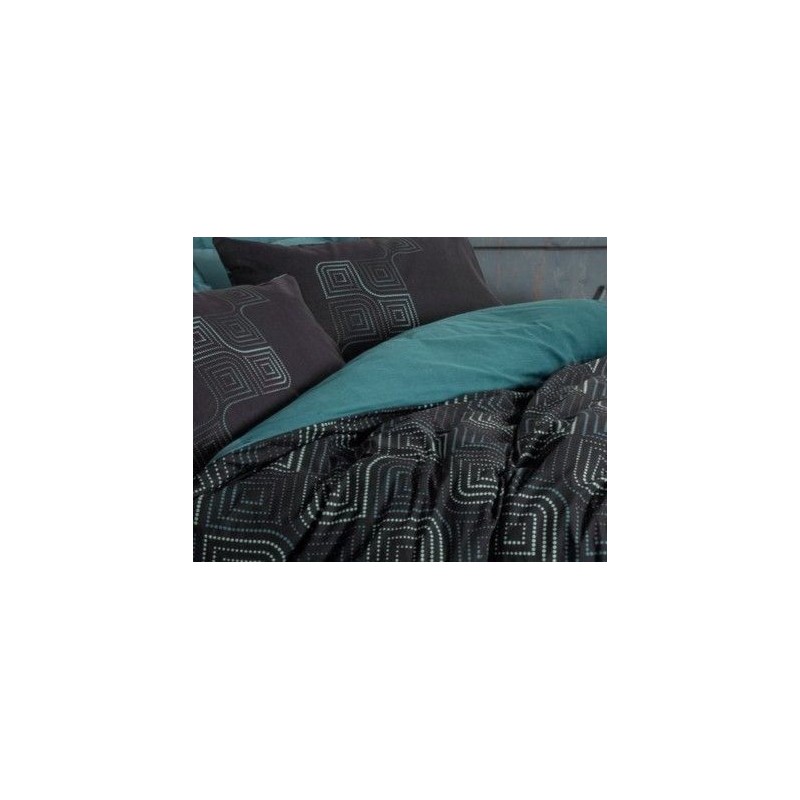 Parure de lit - 1 housse de couette 140 x 200cm + 1 taies d'oreiller 60 x 60 cm - 100% coton renforcé - Imprimé Bleu pétrole