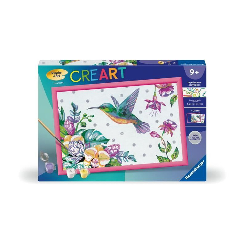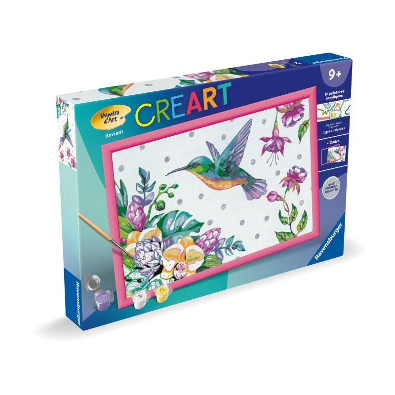 CreArt Kids 31x21cm Colibri et fleurs exotiques, Kit de peinture par numéros Numéro d'Art, Des 7 ans, 25851, Ravensburger