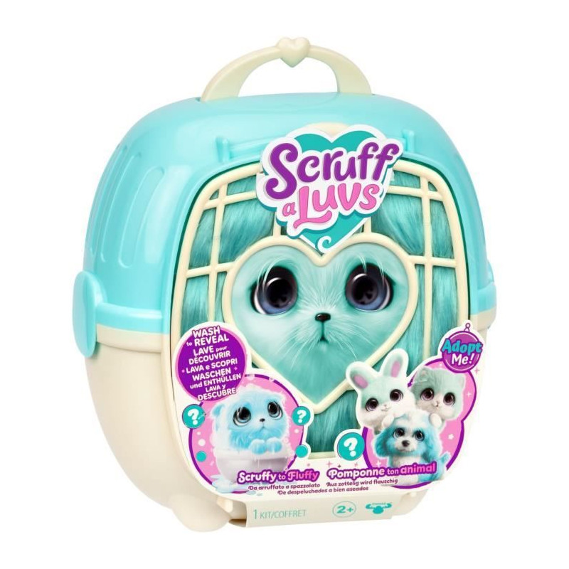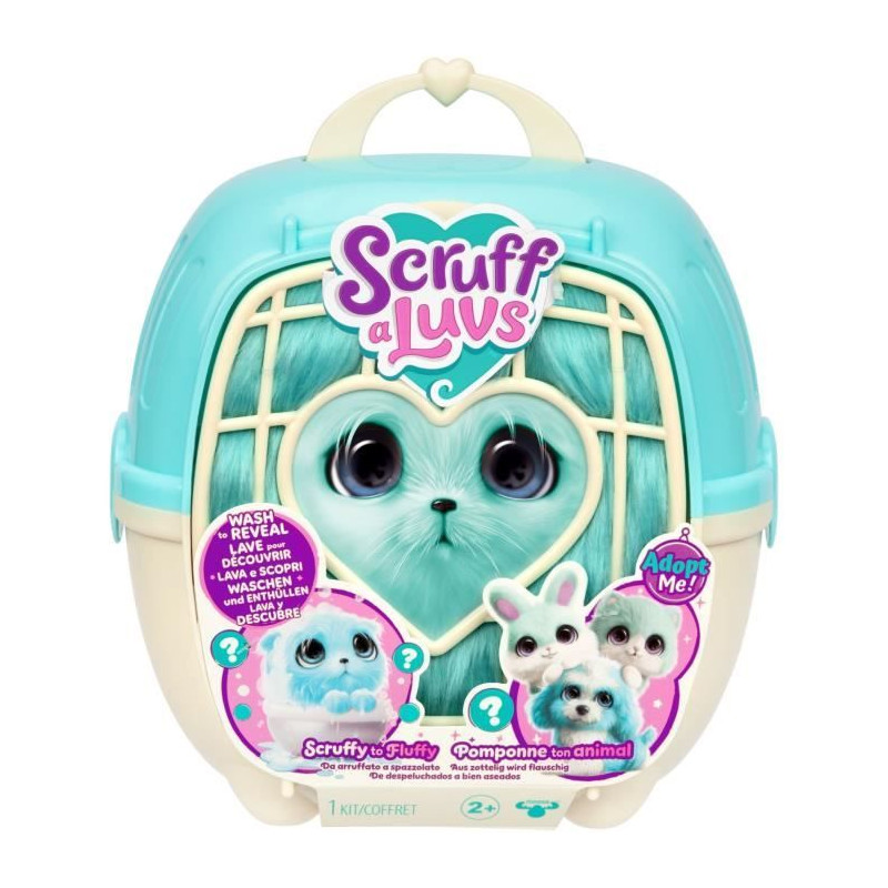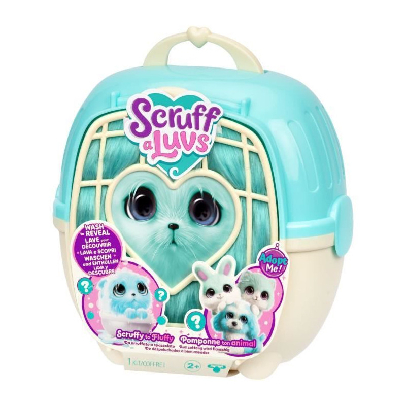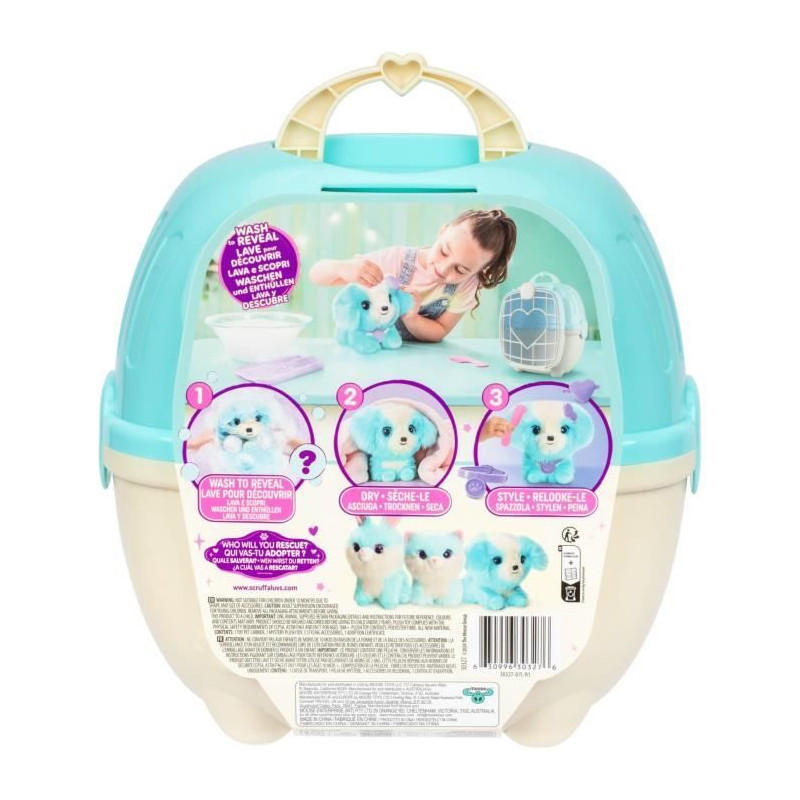 Cette pauvre petite boule de poils a besoin d'un toilettage pour retrouver son éclat. Lave-la dans une bassine d'eau et seche-la. Tu peux aussi la pomponner avec les accessoires inclus. Magique, elle se transforme en un adorable animal ! Chat, chien ou lapin, qui découvrira-tu ?1x caisse de transport, 1x peluche mystere a laver, 3x accessoires, 1x certificat d'adoption