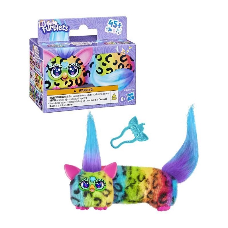 Furby DJ Furblets Rain-Bow-Kat, Mini peluche électronique, jouet pour enfant, 45 sons et musiques, des 6 ans