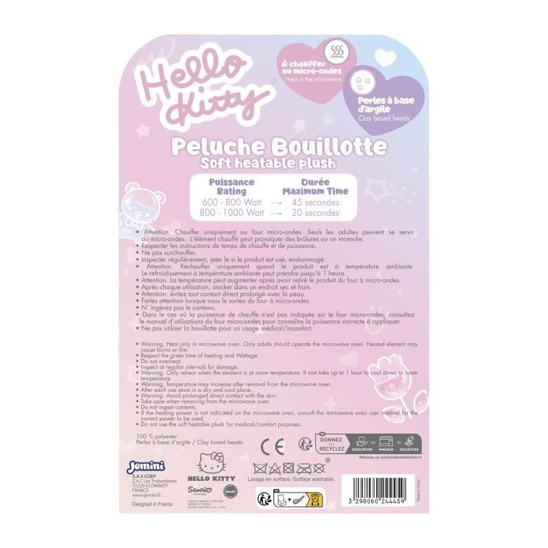 Peluche bouillote - HELLO KITTY - JEMINI - Douce - 21 cm