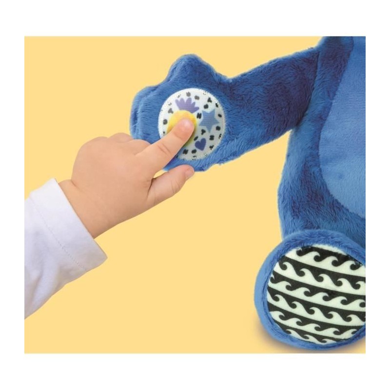 Une douce peluche Stitch a câliner,avec des fonctions électroniques : en appuyant sur le bouton,Bébé pourra écouter des musiques,des berceuses et des effets sonores. Stitch,le compagnon des siestes. Cette peluche ultra douce joue des berceuses et des mélodies pour endormir bébé tout en douceur. Un câlin tout doux et des chansons douces,le duo parfait pour les petites nuits agitées. Découvre l'uni