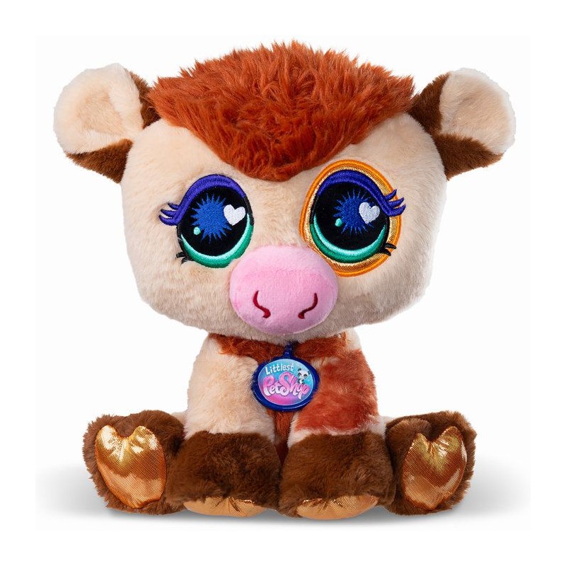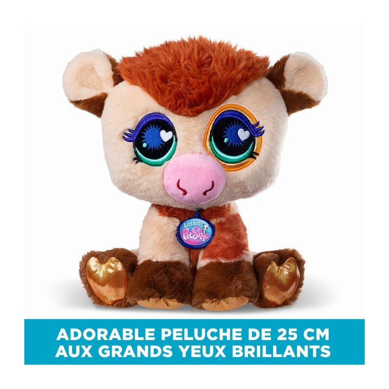 Découvrez la peluche Deluxe Petshop Vache de 25 cm ! Plongez dans l'univers super fun des Petshop avec ces peluches tres douces et colorées.