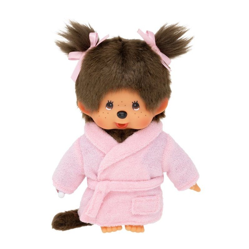 Peluche Monchhichi - BANDAI - Peignoir rose - 20 cm