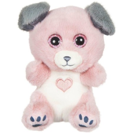 Un adorable chien aux teintes douces de rose poudré et gris, orné d'un joli coeur sur son ventre, parfait pour la Saint Valentin ou la Fete des Meres. Fabriqué avec 2 longueurs de poils différentes, offrant une texture ultra-douce qui imite parfaitement la fourrure. Ses grands yeux brillants et scintillants ajoutent une touche magique et attachante.