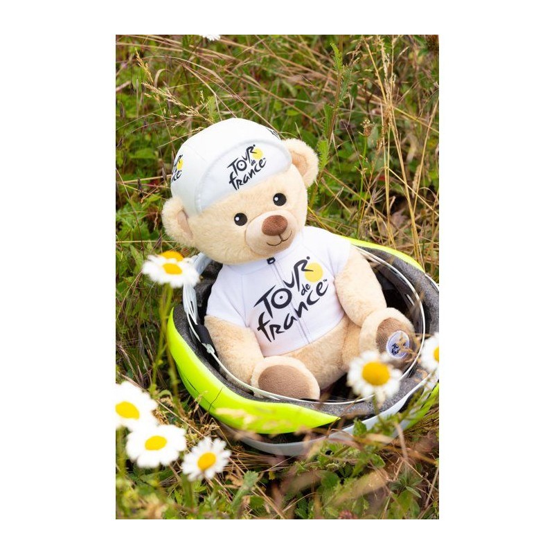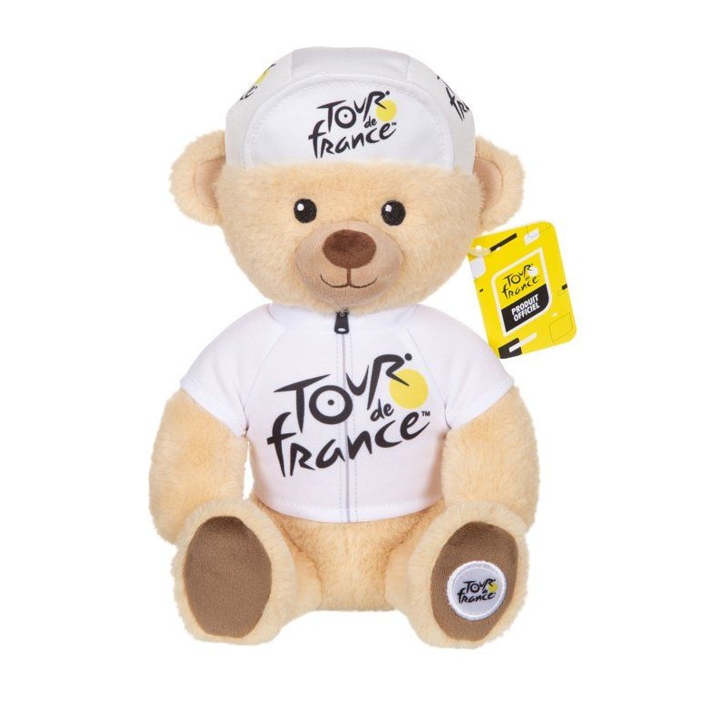 Peluche officielle du Tour de France - GIPSY TOYS - Ours maillot et casquette meilleur jeune vainqueur blanc - 24 cm