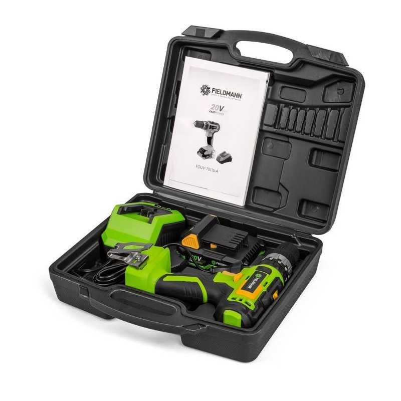 Cordless impact drill - FIELDMANN - 20V - 2Ah battery - 35 Nm - Quick charger and case included
