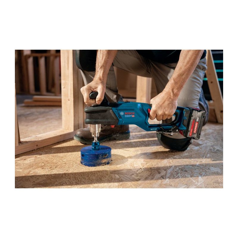 La GRD 18V-127 Professional est utilisable avec une meche a simple spirale de 38 mm, une meche a façonner auto-pénétrante de 65 mm et une scie-trépan de 127 mm. Elle est destinée aux applications dans le bois et dans l'acier. Compatible avec le Professional 18V System Bosch et avec l'alliance batteries multimarques AMPShare.