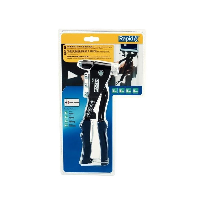 RAPID Crimping tool pliers RP110. Tool designed for crimping nuts. Ideal solution for assembling materials with access to only one side of the support, and without the need to add bolts. This hardened aluminum clamp will allow you to install M3, M4, M5 and M6 nuts.