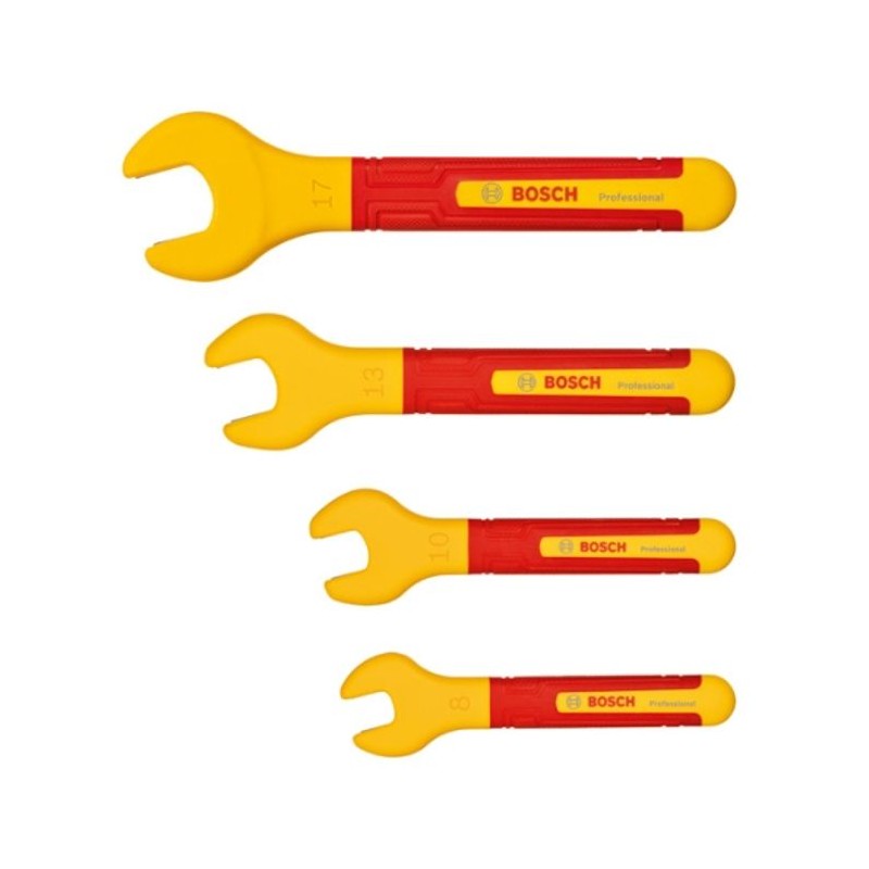 Bosch Professional set de clés plates VDE (avec 4 clés plates : 8 mm, 10 mm, 13 mm et 17 mm, certifiées jusqu'a 1 000 V)