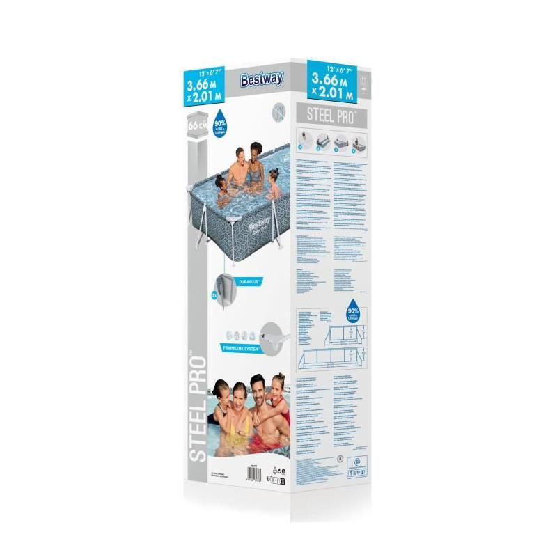 BESTWAY Above Ground Tubular Pool - Steel Pro™ - 366 x 201 x 66 cm - Rectangular - Graphic Design